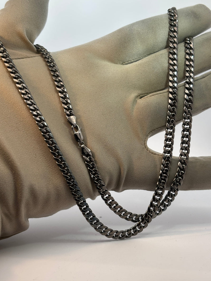 Chaine en or plaquée au Rhodium noir avec un procédé électrochimique.
