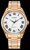 Make a statement by wearing this sophisticated Fiore watch from Citizen for women. Featuring a white dial with contrasting Roman numerals, a rose gold-tone stainless steel bracelet with a fold-over clasp, this watch stands out by combining elegance and subtlety. It is a classic model enhanced with a touch of modernity and a genuine sapphire glass. Equipped with Citizen's sustainable Eco-Drive technology, this watch is fully powered by light. The sleek design of this elegant rose gold-tone women's watch, whose dial has three hands, refines any outfit. Thanks to Citizen's Fiore watch range combining boldness and elegance, compromises are a thing of the past!