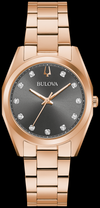 The classic Bulova Surveyor line has been updated with a women's Dress Sport watch. This rose gold watch features a stainless steel case and bracelet with an elegant style. The sunray gray dial is hand-set with 11 diamonds for both the look and feel of a luxury watch. This quality watch is well-made and beautifully detailed, making it an elegant addition to any collection.