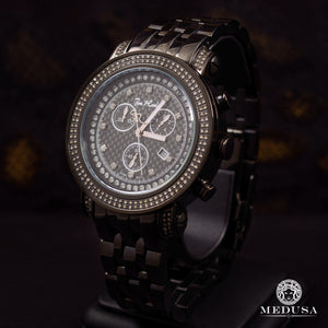 This Joe Rodeo watch is decorated with high-quality genuine diamonds and comes with a fully functional SWISS chronograph movement, a stainless steel case, and a numbered and individually engraved stainless steel back. Water resistant up to 100m (330ft). This diamond watch is guaranteed 100% brand new and authentic and will be delivered in original manufacturer packaging with two additional bands and all original documents.