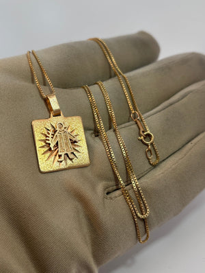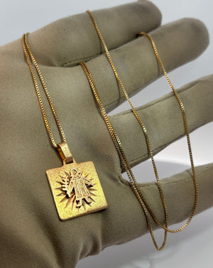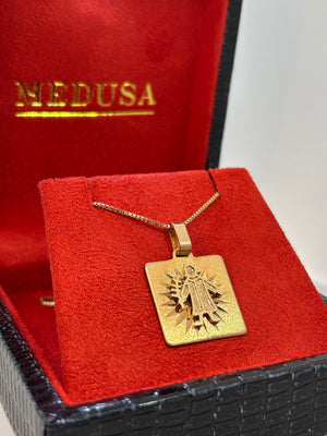 Chain: 1mm Box chain 26'' Pendant: 20mm x 28mm |
