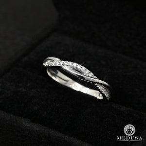 Diamond solitaire-style engagement ring set with wedding band. The diamond is the most common precious stone for an engagement ring. It is the supreme emblem of love as it symbolizes purity and eternity.