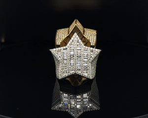 Star-shaped diamond ring. This incredible diamond-studded ring is set on a 10K gold band.