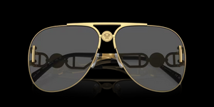Presentation of the butterfly-style temples reinvented by Versace. This oversized pilot shape embodies an iconic yet always fresh style.