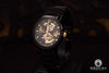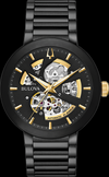 De la colección automática moderna. En acero inoxidable IP negro, movimiento automático de cuerda automática con reserva de marcha de 40 horas y esfera negra de apertura abierta con detalles en oro, cristal mineral abovedado, caja atornillada, brazalete de acero inoxidable IP negro con cierre de doble presión y resistencia al agua a 30 metros.