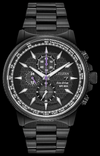 Let the warrior within you emerge thanks to the powerful aesthetic of the new Marvel Black Panther watch by CITIZEN, featuring Wakandan-inspired tribal motifs and bold silver markers. Enhanced with purple accents, this watch features a black ion-plated stainless steel case with a black chroma finish, a black ion-plated stainless steel bracelet, a dial adorned with black tribal patterns, and a date indicator. Equipped with CITIZEN's Eco-Drive technology and powered by light in all its forms. Never needs a battery. ©2019 MARVEL.