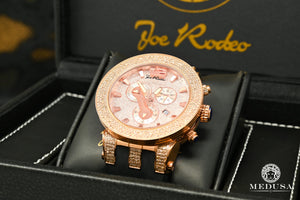 Este reloj Joe Rodeo está decorado con diamantes genuinos de alta calidad y viene con un movimiento cronógrafo SWISS completamente funcional, caja de acero inoxidable y fondo de acero inoxidable grabado y numerado individualmente. Resistente al agua hasta 100 m (330 pies). Este reloj de diamantes está garantizado como 100% nuevo y genuino y vendrá en su empaque de fabricación original con dos bandas adicionales y todos los documentos originales.