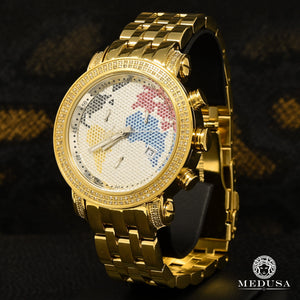 Este reloj Joe Rodeo está decorado con diamantes genuinos de alta calidad y viene con un movimiento cronógrafo SWISS completamente funcional, caja de acero inoxidable y fondo de acero inoxidable grabado y numerado individualmente. Resistente al agua hasta 100 m (330 pies). Este reloj de diamantes está garantizado como 100% nuevo y genuino y vendrá en su empaque de fabricación original con dos bandas adicionales y todos los documentos originales.