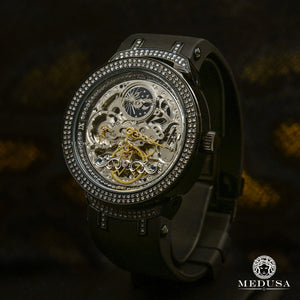 Este reloj Joe Rodeo está decorado con diamantes genuinos de alta calidad y viene con un movimiento cronógrafo SWISS completamente funcional, caja de acero inoxidable y fondo de acero inoxidable grabado y numerado individualmente. Resistente al agua hasta 100 m (330 pies). Este reloj de diamantes está garantizado como 100% nuevo y genuino y vendrá en su empaque de fabricación original con dos bandas adicionales y todos los documentos originales.