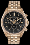 Vaya un paso más allá con el reloj CITIZEN® Classic reinventado con cronógrafo de 1/20 segundo, calendario perpetuo y hora dual en una caja y brazalete de acero inoxidable en tono oro rosa complementados con una esfera negra. Con nuestra tecnología Eco-Drive, alimentada por luz, cualquier luz. Nunca necesitas una batería.