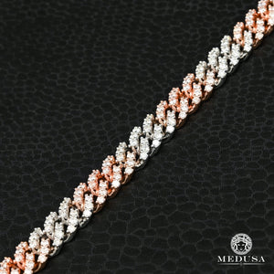 Pulsera en dos tonos de oro rosa helado con punta cubana de 8 mm