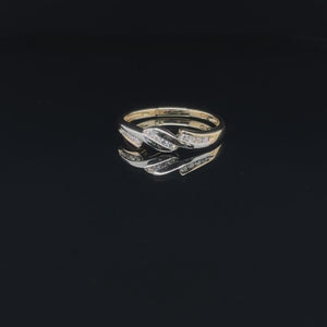 Este increíble anillo de diamantes está montado en un anillo de oro amarillo de 14 quilates.