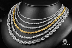 ''Torsade'', Chaîne à maille torsadée disponible dans toutes les dimensions et longueurs. Ce modèle est idéal pour porter avec un pendentif.