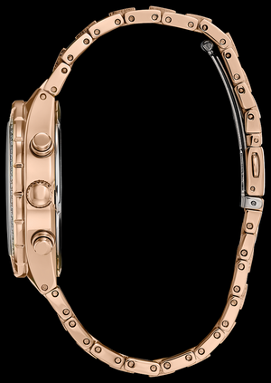 Apportez de la sophistication à votre journée avec le CITIZEN® Crystal. Cette montre chronographe intemporelle affiche l'heure 12/24 heures et est présentée dans un boîtier et un bracelet en acier inoxydable couleur or rose ornés de cristaux avec un cadran noir. Doté de notre technologie Eco-Drive – alimenté par la lumière, n’importe quelle lumière. Jamais besoin de batterie.