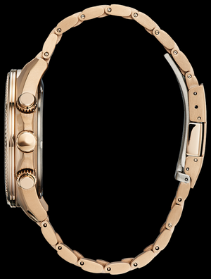 Montez d'un cran avec la montre CITIZEN® Classic réinventée avec un chronographe 1/20 de seconde, un calendrier perpétuel et une double heure dans un boîtier et un bracelet en acier inoxydable couleur or rose complétés par un cadran noir. Doté de notre technologie Eco-Drive – alimenté par la lumière, n’importe quelle lumière. Jamais besoin de batterie.