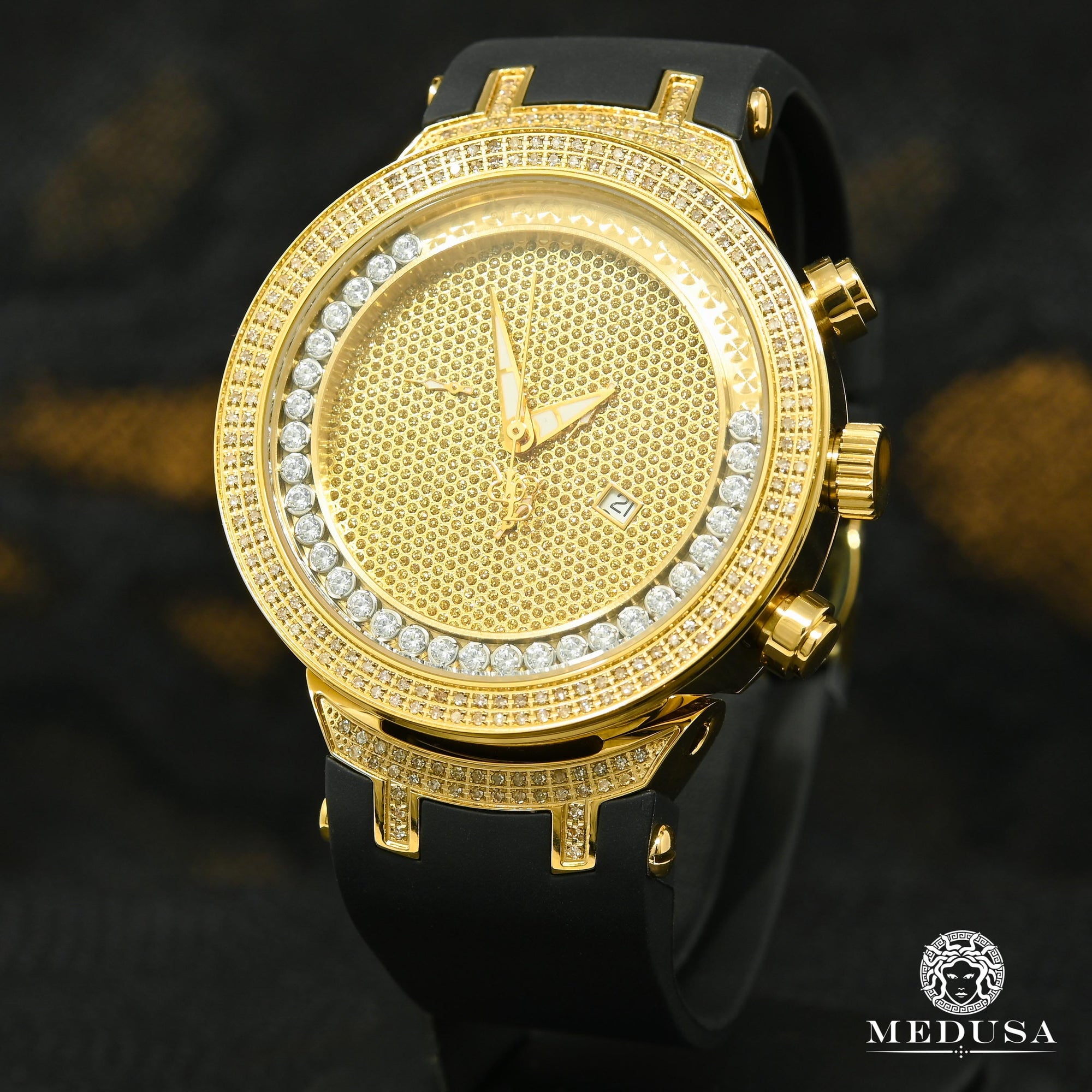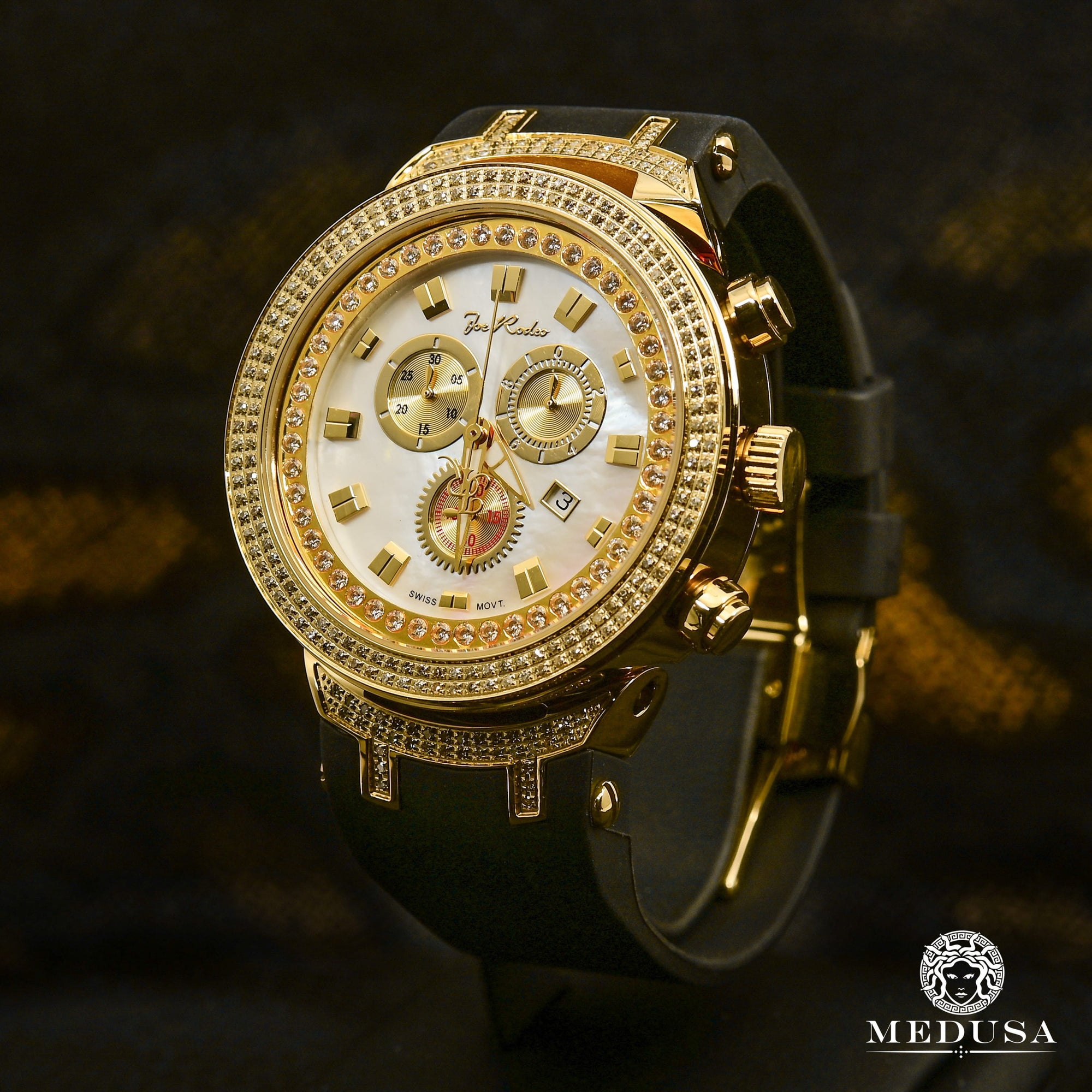 Cette montre Joe Rodeo est décorée avec des diamants véritables de haute qualité et est livrée avec un mouvement chronographe SWISS entièrement fonctionnel, un boîtier en acier inoxydable et un dos en acier inoxydable numéroté et gravé individuellement. Étanche jusqu'à 100m (330ft). Cette montre en diamant est garantie à 100% tout neuf et authentique et sera livrée dans un emballage de fabrication original avec deux bandes supplémentaires et tous les documents originaux.