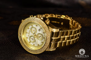 Cette montre Joe Rodeo est décorée avec des diamants véritables de haute qualité et est livrée avec un mouvement chronographe SWISS entièrement fonctionnel, un boîtier en acier inoxydable et un dos en acier inoxydable numéroté et gravé individuellement. Étanche jusqu'à 100m (330ft). Cette montre en diamant est garantie à 100% tout neuf et authentique et sera livrée dans un emballage de fabrication original avec deux bandes supplémentaires et tous les documents originaux.