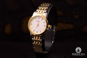 De la Classic Collection. En acier inoxydable avec finition bicolore, 4 diamants fixés individuellement à la main sur un cadran à motifs argenté et blanc, et une boucle déployante.