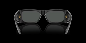 Une version plus étroite de la forme rectangulaire classique, cette monture fait un clin d'œil à la scène de la mode des années 90 avec ses contours épurés et son profil charismatique à dessus plat. Les embellissements emblématiques de Versace allient héritage et style résolument moderne.