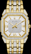 La dernière montre Octava de la collection Crystal pour hommes arrive avec un style brillant et un attrait contemporain. Le nouveau boîtier en acier inoxydable bicolore de forme angulaire entoure le cadran blanc argenté et pavé à 3 aiguilles avec des accents de chiffres romains audacieux et comporte 300 cristaux sertis à la main positionnés sur le cadran, le boîtier et le bracelet pour améliorer le conception frappante. Le bracelet doré et argenté est doté d'une boucle déployante avec poussoirs pour une fermeture facile. Cette montre sophistiquée emmènera le porteur du jour au soir avec un style sans effort.