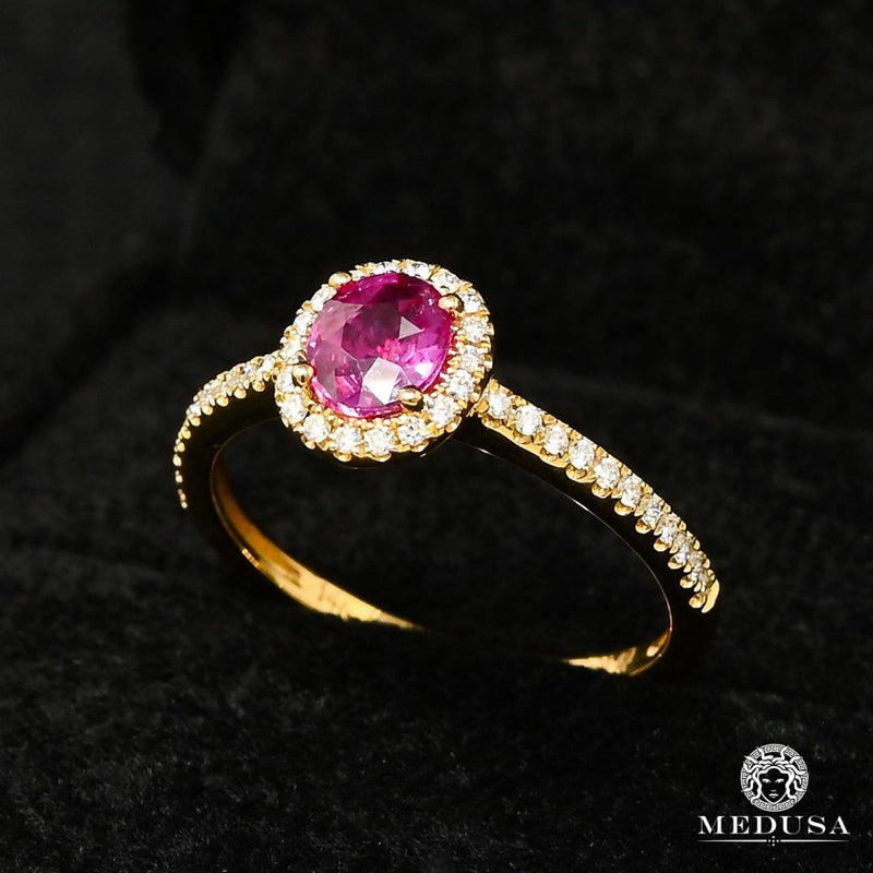 Bague Saphir Rose à Diamants en Or Jaune14-Karat